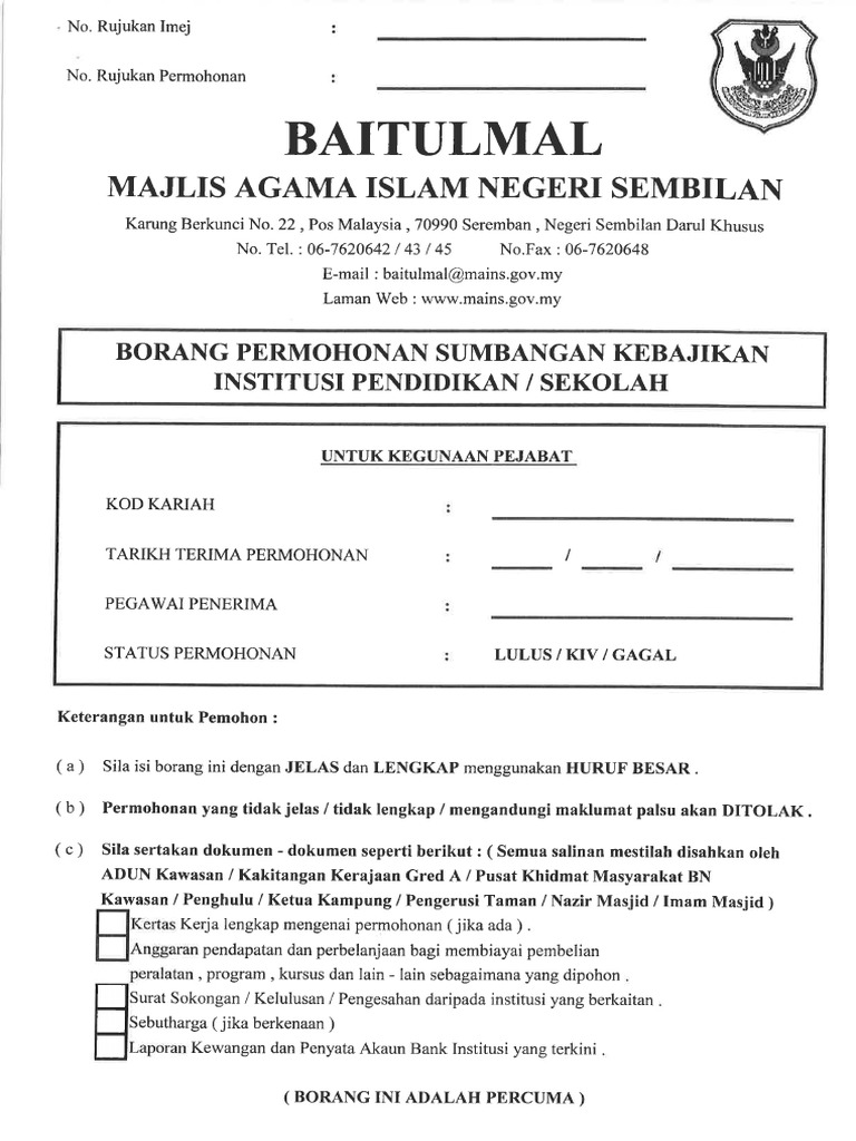 Borang Permohonan Sumbangan Kebajikan Institusi Pendidikan Sekolah 2016 Pdf Pdf