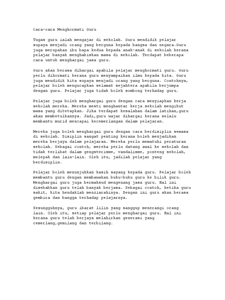 Orang yang tidak menghormati yang lebih tua tidak. Bagaimana cara menghormati dan mematuhi. Untuk cara menghormati guru sama seperti menghormati orang tua tatkala masih hidup di atas namun ada beberapa tambahan di antaranya.
